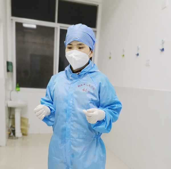 她是一名年经护士,2年没有回家过年了。本来,她期待着值完这个最后一个夜班后,回家陪家人好好过个年。但是,刚回到家,她便接到调令,疫情紧急,必须立即到隔离病区支援。她毫不犹豫,立马赶回医院投身隔离病房前线。虽然又是一年没有和家人团聚,但家人对她支援疫情工作非常理解和支持。隔离病区病房条件有限,没有电梯,没有中心供氧,瘦小的她每天要把一箱箱液体抗上二楼,再沉重的氧气瓶送入病房。说到这些,她乐观而自豪的说:“我是抗疫前线的女汉子”!