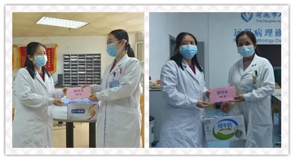 2月26-28日,我院院长唐秀革、党委书记韦义甜等领导班子及医院工会一行走访慰问医院外派支援湖北、都安及河池市疾控中心的医护人员家属,代表医院向默默承担起家庭重担、支持亲人支援的医护人员家属表达崇高的敬意和衷心的感谢,并送上慰问品和慰问金。