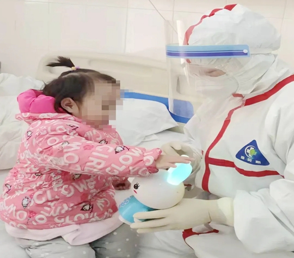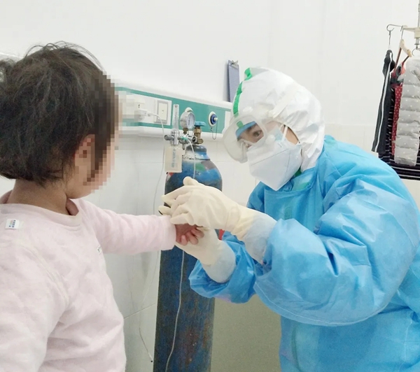 隔离病房里班润丝成了患儿的“临时妈妈”