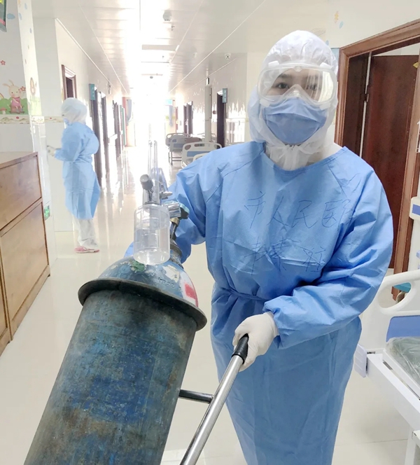第三个感动,来自普通外科护士韦素准。作为土生土长都安人的韦素准,听到都安疫情需要支援时,她大声说:“我是都安人,家乡需要支援,我必须去!”隔离区里,即使穿着多层防护服、戴着沉重护目镜,但是拖地、清洁病房,她依旧动作麻利。在给病人治疗时,她常常用都安方言沟通,让患者感觉更亲切。她经常对同伴们说“等疫情结束,我们一起去吃都安榨粉、‘龙棒’、都安酸”。