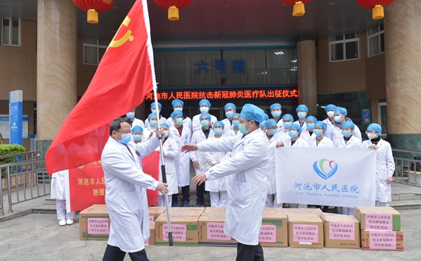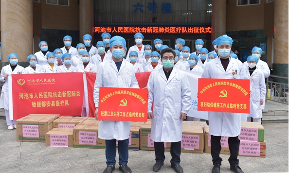 2月10日上午,我院在半小时内迅速组建由16名医生、18名护士共34人组成的医疗队,赶往都安支援新冠肺炎疫情防控救治工作,于13:00出发。