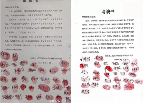 图为驰援都安县抗击新冠肺炎疫情医疗队员请战书。