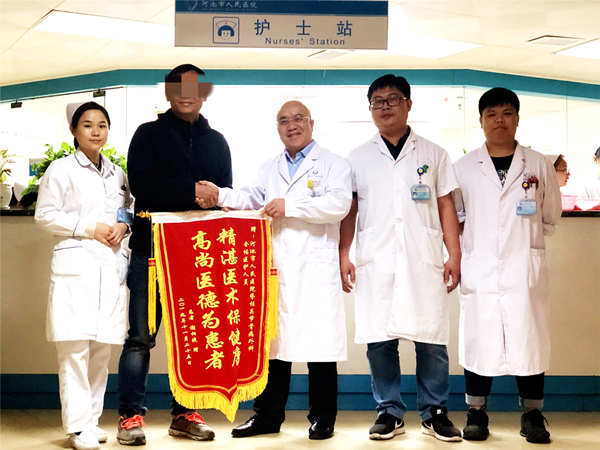 经过精心的治疗,11月25日,谢爷爷康复出院了。他的左下肢肌力恢复到5级,达到正常水平;右下肢肌力恢复到4级,能在旁人协助下站立,能单独坐在床边和家人聊天。患者及家属十分满意,特意给脊柱关节骨病外科送来一面锦旗,以表达真挚的谢意。