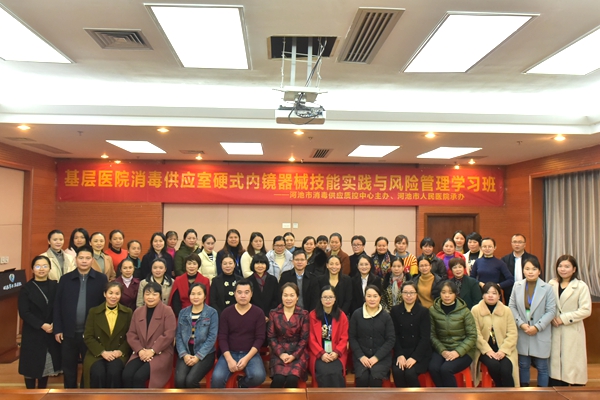 近日,基层医院消毒供应室硬式内镜器械技能实践与风险管理学习班暨2019年河池市消毒供应质控中心会议在我院顺利召开。本次会议由河池市消毒供应质控中心主办,我院承办,来自各县(市)、区医疗机构的消毒供应室及手术室护理人员等200人共享学术盛宴,会议由我院护理部莫喜萍主任主持。