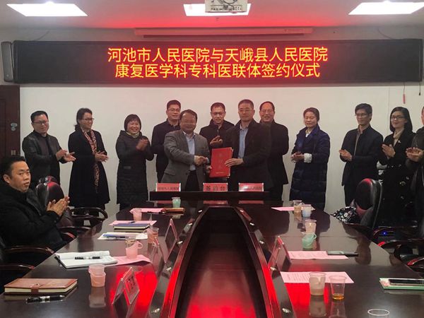 据悉,2018年5月,我院与天峨县人民医院组建紧密型医联体合作关系,此次建立康复医学科专科医联体合作关系更是亲上加亲。我院全体医护人员将不忘初心,进一步完善优质医疗资源下沉长效机制,为河池医联体建设而不断努力,为桂西北百姓健康保驾护航。