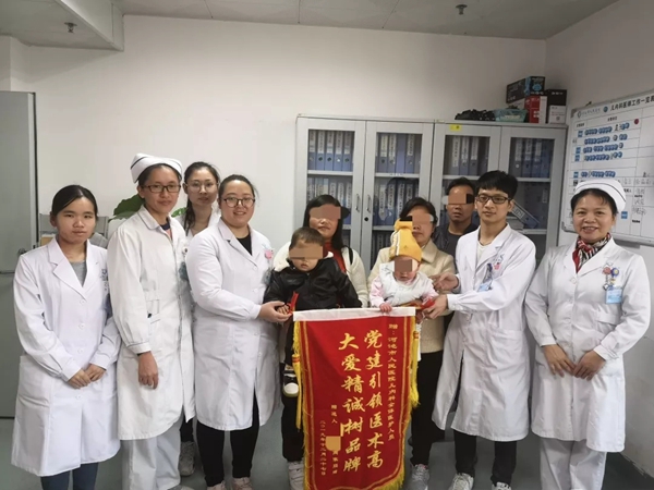 “非常感谢各位医生,护士。你们照顾我的孩子,就像照顾自己的亲人一样,耐心的照顾加上精湛的医术,你们就是真正的白衣天使。”出院当日,两位患儿的家属共同为儿内科医护人员送上锦旗,表达自己的感激之情。