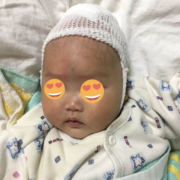 2月25日,我院神经外科收治了一名叫桐桐(化名)的小宝宝。在桐桐出生的时候,被发现枕部有一拇指大小的肉瘤凸起,一开始大家以为和经常见到的“小耳朵”一样,所以都没有太在意。随着桐桐一天天长大,从枕后脑壳缝“钻”出来的“小肉”也在长,等到桐桐三个多月的时候,和鸡蛋那么大的“小肉肉”表层像是覆盖着一层薄膜,触碰时有很强的波动感,似乎稍加用就会破裂。这个脑壳缝让桐桐的父母很是担心,便将桐桐带到我院神经外科就诊。神经外科张传东主任从桐桐的头颅MR+DWI检查报告等检查证实:桐桐为顶部脑膜膨出,建议桐桐进行手术治疗。