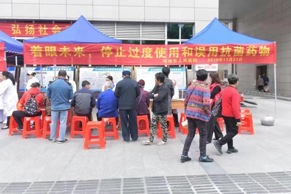 上午,我院在门诊综合楼前举行2019年世界提高抗生素认识周义诊活动,旨在提高市民对抗生素耐药性的认识。