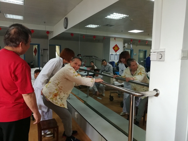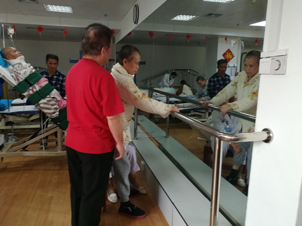 转入时,廖女士还留置胃管及尿管,意识模糊、格拉斯哥昏迷评分E3V3M3,双侧瞳孔对光反应迟钝,左上肢及左下肢肌张力Ⅰ级,ADL评分0分,属于极其严重功能缺陷,大小便失禁。功能诊断为左侧肢体偏瘫、言语障碍、认知障碍、吞咽障碍。在廖女士转科后,康复医学科主任韦志杰副主任医师特别重视其病情变化,立刻组织科室医护人员进行讨论,制定符合廖女士的治疗及康复计划。在给予药物抗炎、抗感染治疗的同时,康复治疗师每天都给廖女士的瘫痪肢体进行按摩及功能锻炼,给予红外线、手指点穴、针灸、低频脉冲电刺激等综合治疗,同时,进行言语、吞咽及认知功能等训练和康复促醒。经过科学、规范的治疗及康复训练,仅用1个月时间,廖女士就已经康复出院。廖女士的康复不是个例,许多脑卒中患者在康复医学科治疗都能获得快速康复治疗效果。
