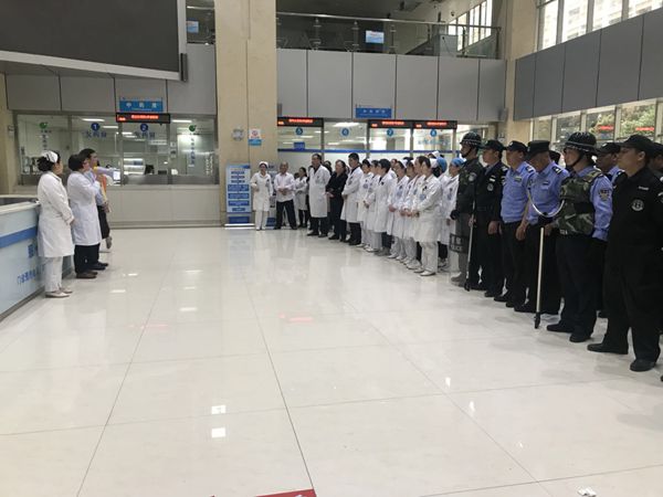 为有效预防重大医疗纠纷的发生,提高医院应对重大突发医疗纠纷的能力,有效保障医务人员人身安全,近日,我院医务科、门诊部联合多部门在门诊开展了一场突发医疗纠纷应急演练。