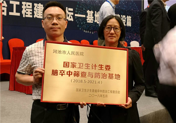 会上,我院被授予“国家卫生计生委脑卒中筛查与防治基地”,成为广西本次唯一获批的脑卒中筛查与防治基地医院。此次国家卫生计生委脑卒中筛查与防治基地落户我院,标志着该院成为河池唯一的国家级防治医院。