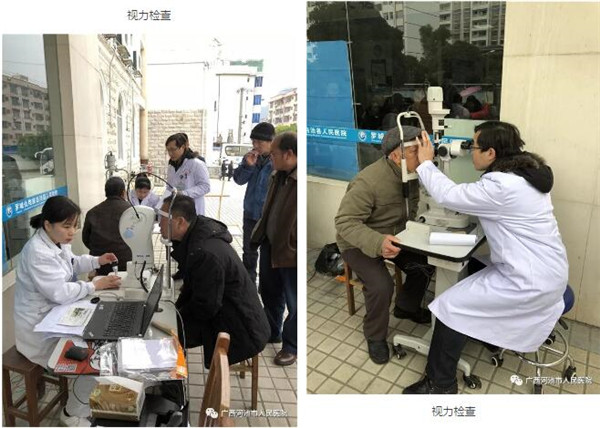 近日,我院眼科在科主任翟建伟副主任医师的带领下,一行5人前往罗城县人民医院,开展眼科手术及义诊活动,并为当地的老年人进行免费的白内障及糖尿病视网膜病变筛查,受到当地百姓一致好评。