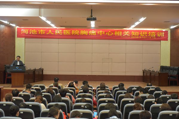 进一步推动我院胸痛中心的建设工作,3月13日晚我院在23楼多功能厅开展胸痛中心相关知识培训。我院全体职工等1500余人分为行政职能科室、临床医技科室和尚荣后勤公司等三个批次参加培训。