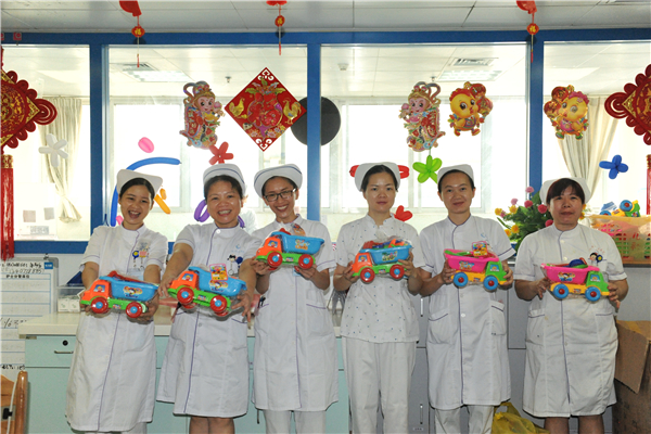 一大早,在韦艳姬护士长的带领下,儿内科医务人员就带着气球、彩带和小礼物来到科室,经过精心的布置,病房内外处处洋溢着节日的气氛。