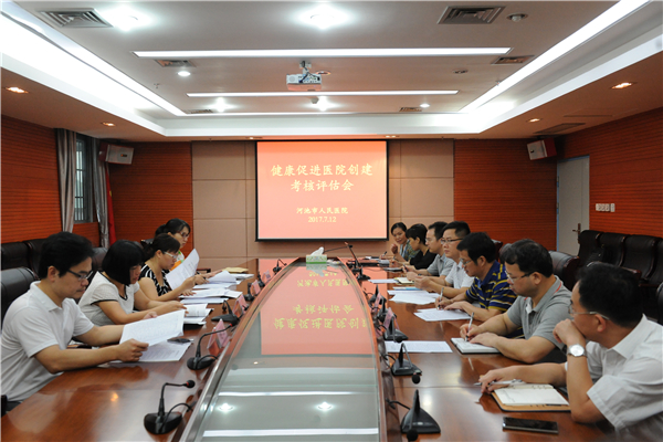 7月12日上午,由梧州市卫生计生委江带灵副主任率领的广西健康促进医院考核组一行4人,来到我院进行健康促进医院创建工作考核评估,我院唐秀革副院长以及相关职能科室负责人一同迎检。