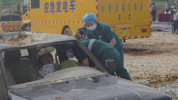 为提高河池市预防和应对地震突发性事件的应急救援和多部门应急联动、协同配合能力,增强地震灾害救援队伍紧急救援能力,7月13日由市人民政府主办的2017年地震应急救援综合实战演练在大化瑶族自治县举行。我院急诊科医务人员参加了此次地震应急救援演练。