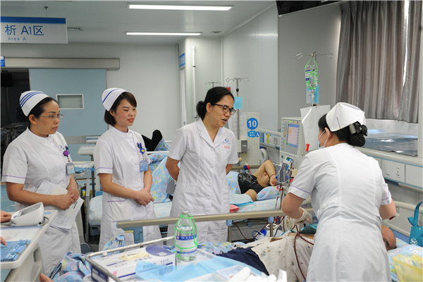 我院肾内科血液透析室是全市最早开展血液透析的单位,使用最先进的双级反渗水处理系统,开展血液透析滤过、血液透析加灌流治疗尿毒症,使用床边血液净化装置(CRRT)对危重患者进行救治,技术成熟,抢救成功率高,血透病人生存期长、生活质量高,相关技术达到国内先进水平。随着血液透析室通过此次扩大技术评估,将为我市肾功能衰竭、尿毒症、肾病综合征等需要进行血液透析治疗的患者提供更优质、高效、便捷的诊疗服务。(曾得科)