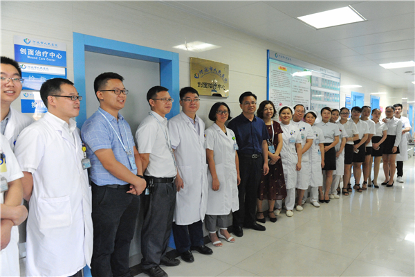 7月27日,桂西北地区首个“创面治疗中心”在河池我院揭牌成立,该中心拥有我院伤口治疗方面的专业医护团队,由河池最美医生、我院创伤手外科主任韦仁杰牵头成立,将共同开展难愈合创面治疗的攻关与研究,推动创面治疗在桂西北地区的系统化、专业化和规模化的发展。随着该中心在我院的落户,将有效提升河池市创面修复的临床诊治水平,为更多的创面患者带去福音。