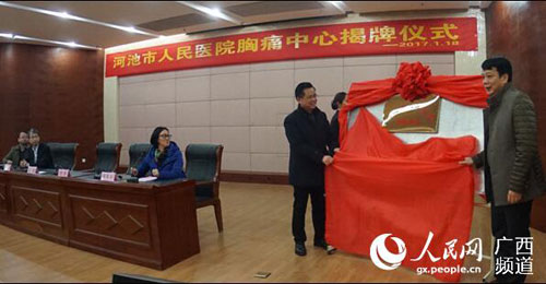 以突发性胸痛为主要症状的急性心肌梗死等心血管疾病,起病急、病情重,就诊环节稍有不顺,就有可能危及患者生命,为了充分利用市人民医院作为河池市心血管疾病诊疗人才小高地的优势,最大程度降低患者的病死率和残疾率。2017年1月18日,在河池市卫生计生委的大力支持和直接指导下,河池市人民医院与120急救中心以及河池市内22家基层医疗机构签订了胸痛病人就诊协议,医院整合心内、心外、急诊、呼吸、消化、重症以及心电图、影像、检验等多学科资源、优化就诊流程,打通胸痛病人的院内、院外就诊环节,确保胸痛病人在第一时间得到规范、有效的治疗最大限度地挽救患者生命。