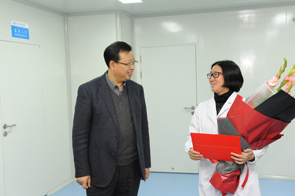 1月19日下午,自治区政协副主席李彬一行在市政协副主席韦凯钟等同志的陪同下,专程到我院看望优秀卫生技术人才代表蒋军松副院长,并向她致以新春的问候和美好的祝愿。