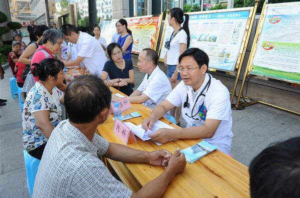 为了让更多群众享受到免费的健康服务,9月3日,我院正式启动2016年“服务百姓健康行动”全国大型义诊周活动,组织了内科、外科、妇产科、儿科、口腔科等科室的15名专家在门诊综合楼前开展2016年“服务百姓健康行动”大型义诊活动。