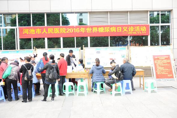 2016年11月14日是“世界糖尿病日”。为提高社会各界对糖尿病防治工作重要性的认识,普及糖尿病防治知识,11月11日上午,我院内分泌科医护人员在门诊综合楼前开展大型义诊活动。