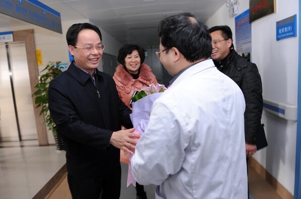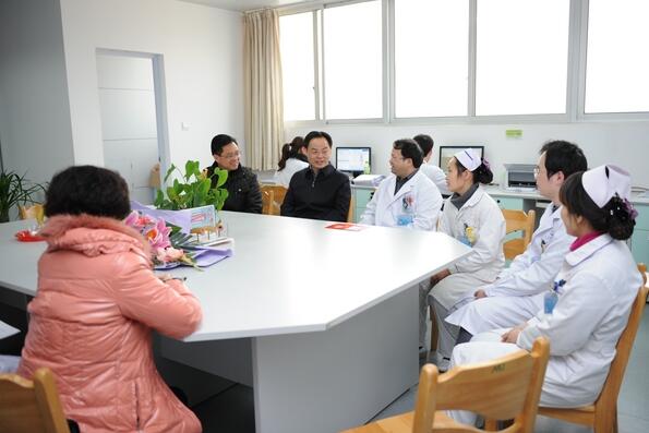 近日,市委常委、统战部部长罗日新一行专程来到我院看望优秀卫生技术人才代表、心血管内科主任、学科带头人唐秀革副主任医师,向他致以新春的问候和美好的祝愿,我院院长梁涛、人事科科长谭善梅陪同慰问。