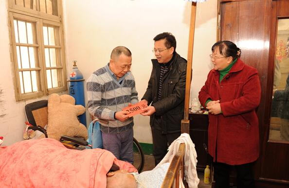 2014年春节即将来临之际,1月21日,我院院长梁涛、党委书记陆艳姣携同党政领导及院党政办、工会、人事科等职能部门负责人开展新春慰问活动,为40多名离退休干部、困难老党员、困难职工送去组织的温暖和关怀,切实让干部职工分享医院建设发展成果,帮助他们过上一个欢乐、祥和的新春佳节。