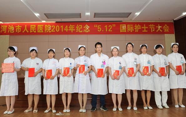 梁涛院长代表医院领导班子向全院护士们致以节日的问候,向受表彰的集体和个人表示热烈祝贺,并感谢全院护士为医院的建设发展做出的贡献。他要求护理工作要继续与迎接三级甲等综合医院复审,发展桂西北医院联盟等医院中心工作相结合,打造护理服务品牌,努力为广大患者提供多层次、多方位的护理服务;广大护理人员要与医院同呼吸、共命运,不断强化综合素质,为顺利通过三级综合医院复审工作和医院的健康发展贡献力量。