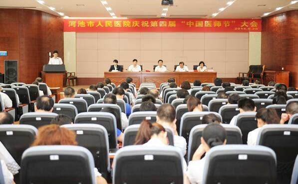 2014年6月26日是第四届“中国医师节”,为纪念6.26中国医师节,大力弘扬“救死扶伤、全心全意为人民健康服务”的行业精神,突出“大医精诚,济世救人”的医院宗旨,展示我院医务人工作者敬业奉献、奋发向上的精神风貌,进一步推进医院三甲复审工作,我院于26日下午在门诊综合楼23楼多功能厅召开纪念第四届“中国医师节”大会,院领导出席纪念会,刘景发副院长主持会议。会议总结了过去一年来的医师工作取得的成绩,并对优秀科主任、优秀住院医师、三甲知识竞赛、三基知识竞赛、病历质量评比获奖个人和集体进行了表彰。