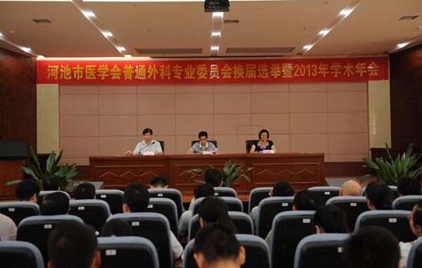 9月14日、河池市市医学会普通外科专业委员会换届选举暨2013年学术年会在我院成功召开,市卫生局副局长蓝如料,市医学会会长、我院副院长谭俊扬,我院副院长蒋军松等领导出席、来自市区、各县(市)医院及部分乡镇卫生院普通外科专业医务人员100多人参加了本次会议。