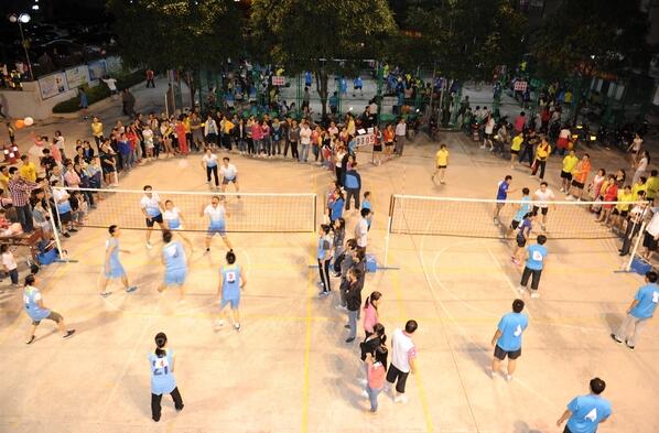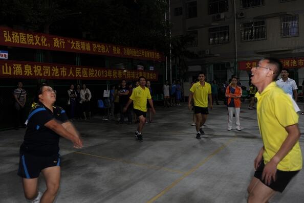 9月25日,我院2013年秋季气排球比赛在医院篮球场拉开序幕。来自全院各科室的41支参赛队伍共400余名参赛队员参加开幕式。杨立倩副书记主持,梁涛院长、陆艳姣书记、谭俊扬副院长、蒋军松副院长出席开幕式。