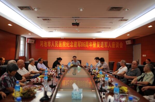 7月31日,我院在门诊综合楼22楼行政会议室,隆重召开纪念建军86周年暨复退军人座谈会,全院复退军人代表共40余人参加座谈会,院领导梁涛、陆艳姣、刘景发、谭俊扬,工会、人事等部门的领导出席座谈会。