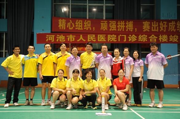 11月10日,河池市人民医院羽毛球混合团体邀请赛在市体育训练中心举行。由我院羽毛球爱好者组成的队伍在副院长蒋军松和党委副书记杨立倩的带领下与来自百色市人民医院、平果县卫生联队、河池市卫生联队、都安县卫生联队的羽毛球队进行了友好交流和球技切磋。