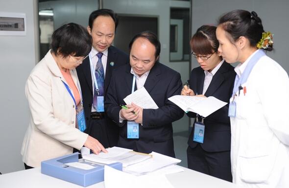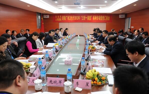 11月23日,由卫生厅黎火佳处长领队的广西卫生厅2012年“三好一满意”、“抗菌药物临床应用专项整治”、“平安医院”、“优质护理”专项督查组专家一行14人,莅临我院进行2012年 “三好一满意”系列活动专项督查。