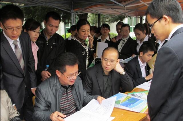 如果说讲堂收到了良好的效果,那么,接下来的现场招聘则可以说是竞争激烈、优秀中选优了。主要采取由学生每10人一组进行简短的自我介绍,结合其简历及成绩等情况,初步筛选了护理人员61人,医疗人员120人进行第二轮筛选,选出了护理人员48人,医疗人员96人。最后根据招聘计划进行最后筛选,从中选出了相对优秀的护理人员28人,医疗人员84人当场签订了协议。招聘会从早上一直持续到晚上10点,参加我院招聘的人数达到270人。