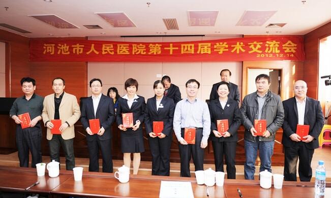 12月14日,我院第十四届学术交流会在医院门诊综合大楼五楼会议室如期举行,会议邀请了河池市卫生局以及兄弟单位的领导担任评委,医院领导、学术委员会成员、副护士长以上中层干部以及论文第一作者、实习生、进修生共320人参加了会议。会议分两个部分进行,上午由刘景发副院长主持,下午由陆艳姣书记主持。