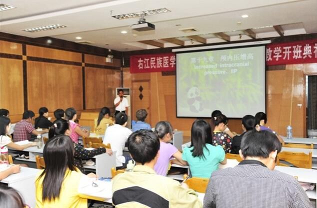 随后医科大学考察组在我院领导的陪同下实地参观了研究生班教室、教师休息室、门诊综合大楼示教室等教学设施。