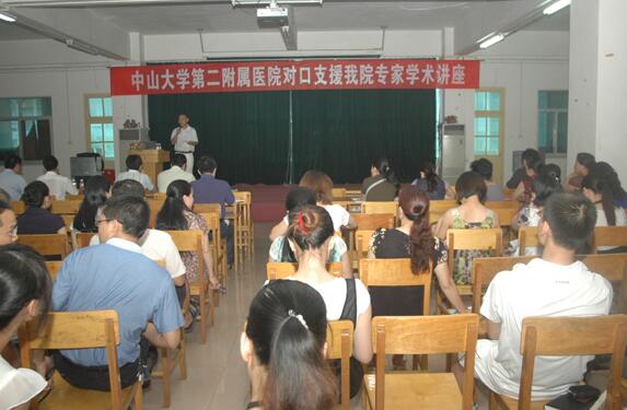 6月22日下午,我院在三大教室举办《糖尿病治疗的新观点》、《腰椎间盘退变性疾病的治疗策略》专题学术讲座。此次讲座由我院科教科科长张传东主持,对口支援我院的中山大学附属二医院肾病内科专家张益民博士和骨科专家叶伟博士主讲,医院临床、医技人员共200多人参加。