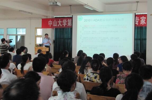 首先,张益民教授讲述了糖尿病在中国、美国的发病情况,从糖尿病的诊治情况引出了东西方人在饮食、β细胞功能、胰岛素抵抗、胰岛素功能等方面的差异问题。他通过广泛的图文材料,旁征博引,用渊博的知识,生动地为大家讲述了糖尿病的相关情况和最新研究成果。他还着重讲解了指导高血糖治疗三步曲之胰岛素加二甲双胍有显著的降糖效果和胰岛素强化治疗的重要意义,为我院的糖尿病治疗带来了新理念。