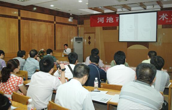 当天下午,我院在学术报告厅举行了全市医院骨科学术沙龙,由钱本文教授对髋关节生物力学、“无柄髋关节” 置换新技术进行了讲学,与参会人员共同研讨了无柄髋关节置换新技术的临床应用及技术推广。来自河池市各县、市、区医院骨科主任及业务骨干76人参加了骨科学术沙龙及现场手术观摩。