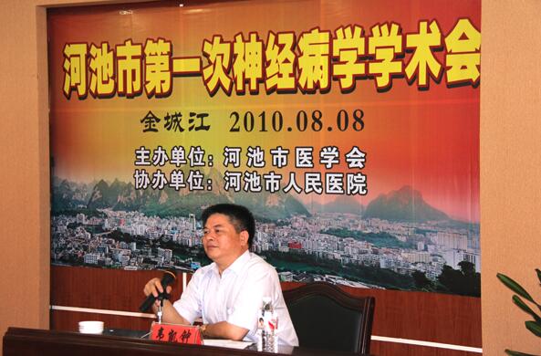 2010年8月7日至8日,由河池市医学会主办、市人民医院协办的河池市医学会神经病学分会成立暨第一次学术会议在金城江隆重举行。市政协副主席、市卫生局局长韦凯钟,市医学会会长谭俊扬,副会长陆艳姣等出席会议。市级、县级、部分乡镇卫生院的100多名代表参加。