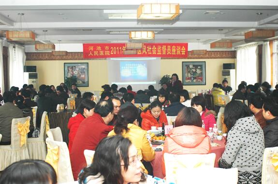 为进一步加强医德医风建设,广泛了解社会各界对医院一年来工作的评价和医院目前存在的问题,改善和提高医疗服务质量。我院于1月12日下午在桃花岛酒家召开2011年医德医风社会监督员座谈会。座谈会由院党委书记陆艳姣主持。社会各界监督员代表及来自11个县(市)的乡镇卫生院有关领导人以及医院相关负责人约200人参加了会议。