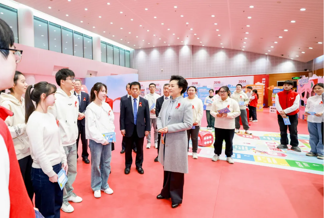 近日,世界卫生组织结核病/艾滋病防治亲善大使彭丽媛在北京科技大学出席2024年“世界艾滋病日”主题宣传活动,并为大学生防艾志愿者代表授旗。国家卫生健康委主任雷海潮,国家卫生健康委副主任、国家疾控局局长沈洪兵,教育部副部长王嘉毅,北京市委常委、宣传部部长孙军民出席活动。