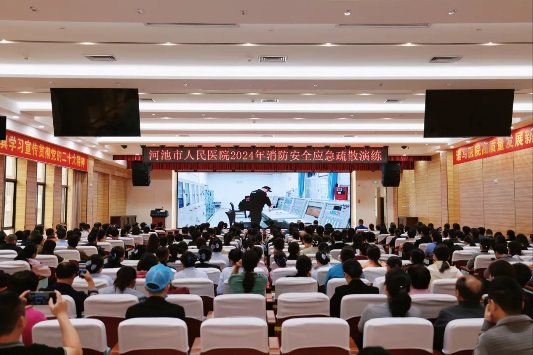 为了加强医院消防安全工作,提高医护人员消防安全意识及应变能力,保障患者及职工人身、财产安全,12月3日,广西医科大学第一附属医院河池医院·河池市人民医院与金城江区消防救援大队联合开展消防应急演练,并进行了首次火灾应急救援演练现场直播,医院领导班子、中层干部、各科室消防管理员、保安、保洁、护工等沉浸式学习火灾应急避险、自救互救知识。