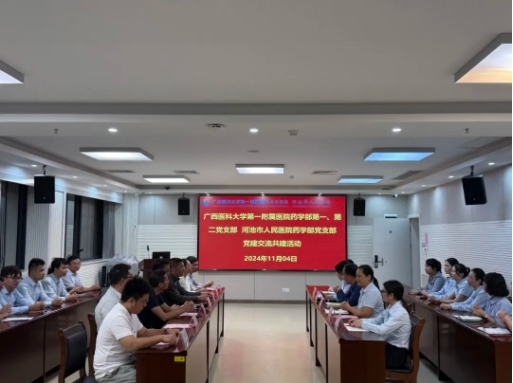 为持续加强党建引领高质量发展,强化党组织间的沟通交流,11月4日,广西医科大学第一附属医院药学部第一、第二党支部与广西医科大学第一附属医院河池医院·河池市人民医院药学部党支部在河池市人民医院教学综合楼5楼多功能教室开展党建交流活动。