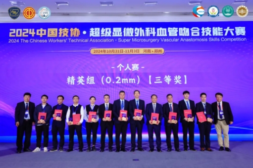 10月31日—11月3日,由中国职工技术协会主办,郑州仁济医院、中国职工技术协会显微修复技能专业委员、中国职工技术协会新技能培训专委会承办的迄今为止最大规模、最高水平的2024中国技协·超级显微外科血管吻合技能大赛在郑州举办,来自巴基斯坦等国家及国内220家医疗机构的显微外科选手齐聚绿城,同场竞技。广西医科大学第一附属医院河池医院·河池市人民医院创伤手外科团队6名医生在副院长韦仁杰的带领下参赛,荣获个人精英组三等奖和团体优秀奖。同时,韦仁杰当选为“中国职工技术协会显微修复技能专业委员会”委员。
