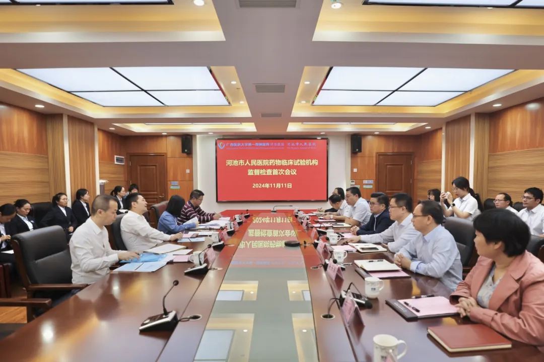 11月11日—13日,自治区食品药品审评查验中心检查组一行3人到广西医科大学第一附属医院河池医院·河池市人民医院开展药物临床试验机构监督检查,医院领导班子成员及相关部门负责人迎检。