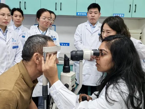 11月11日上午,卡尼卡·阿加瓦尔给医院眼科医疗团队分享了典型病例和手术视频,并向医疗同仁们讲解了视频中手术的操作要点及技巧。随后,她到医院眼科手术室进行参观,并指导飞秒激光近视矫正手术,从优化手术设计方案到手术步骤改进方面都给出了宝贵的意见,为眼科医疗团队带来了丰富的知识和实践经验。