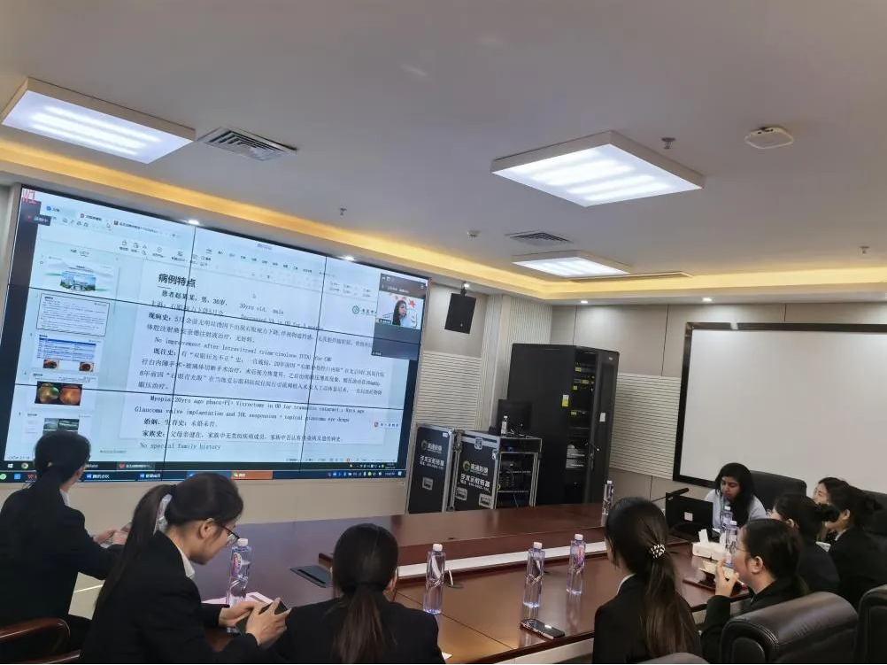 11月10日上午,在医院教学综合楼5楼中控会议室举行腾讯线上视频会议,并连线多家市级医院进行线上交流。卡尼卡·阿加瓦尔主要围绕“眼表疾病的评估和管理”“激光视力矫正:直至无限,超越极限”等方面内容进行专题讲座。其中,对各种眼表疾病表现、最新检查技术、治疗方法、飞秒屈光手术术前检查、方案设计和未来飞秒屈光手术的发展方向进行了深入浅出的讲解,为参会的眼科同仁提供了疾病诊疗的先进经验,让他们了解了国际眼科在各种眼表疾病、飞秒屈光手术治疗领域的新进展。随后,卡尼卡·阿加瓦尔又就会上汇报的疑难病例进行了详细分析,并对每个问题进行解答,指导改进诊疗方案,使参会眼科同仁收获颇丰。